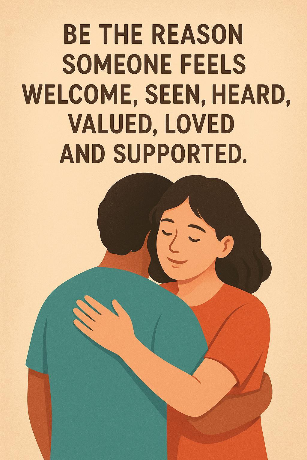 Be the reason someone feels welcome, seen, heard, valued, loved and supported.